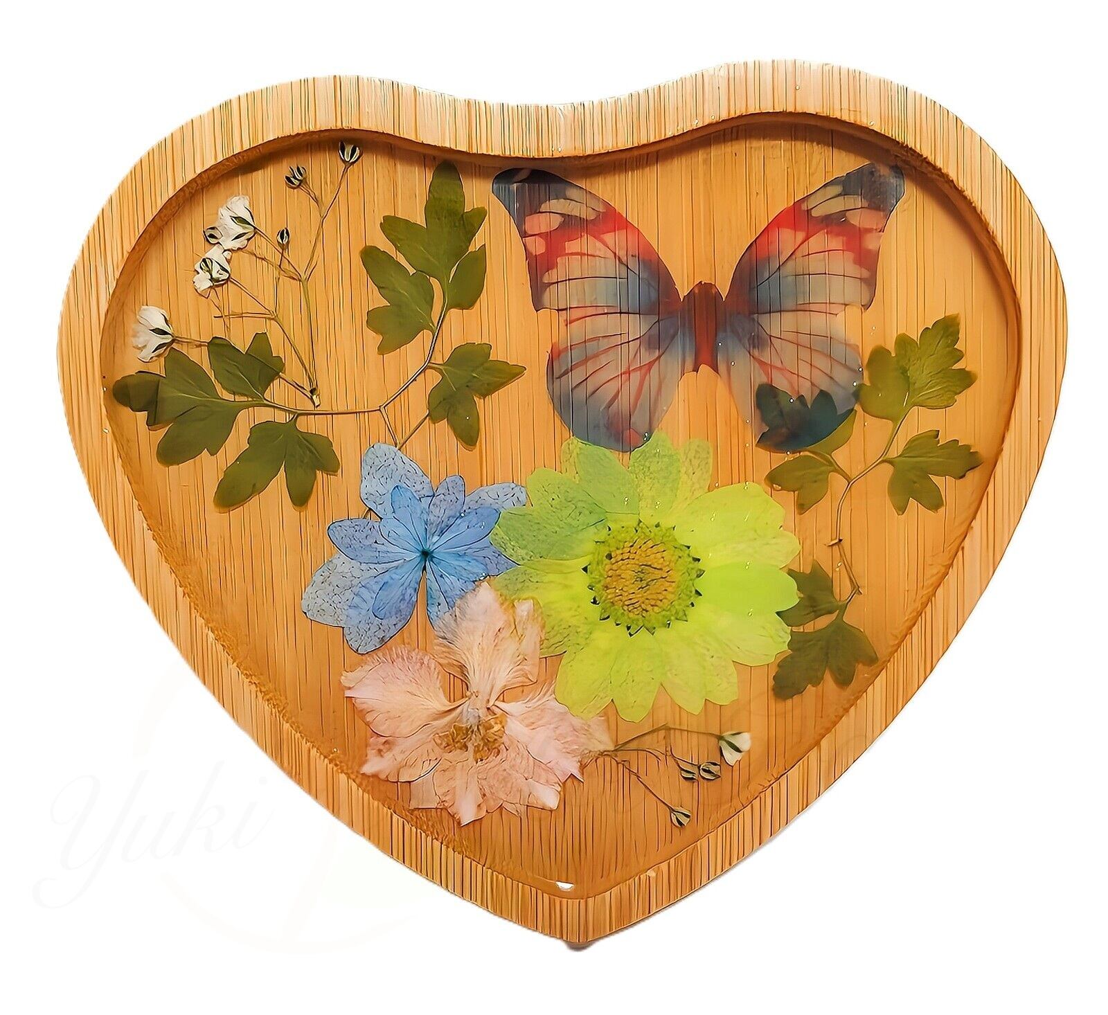 木製・ハーバリウムコースター(蝶)/Wooden Herbarium Coaster (Butterfly)