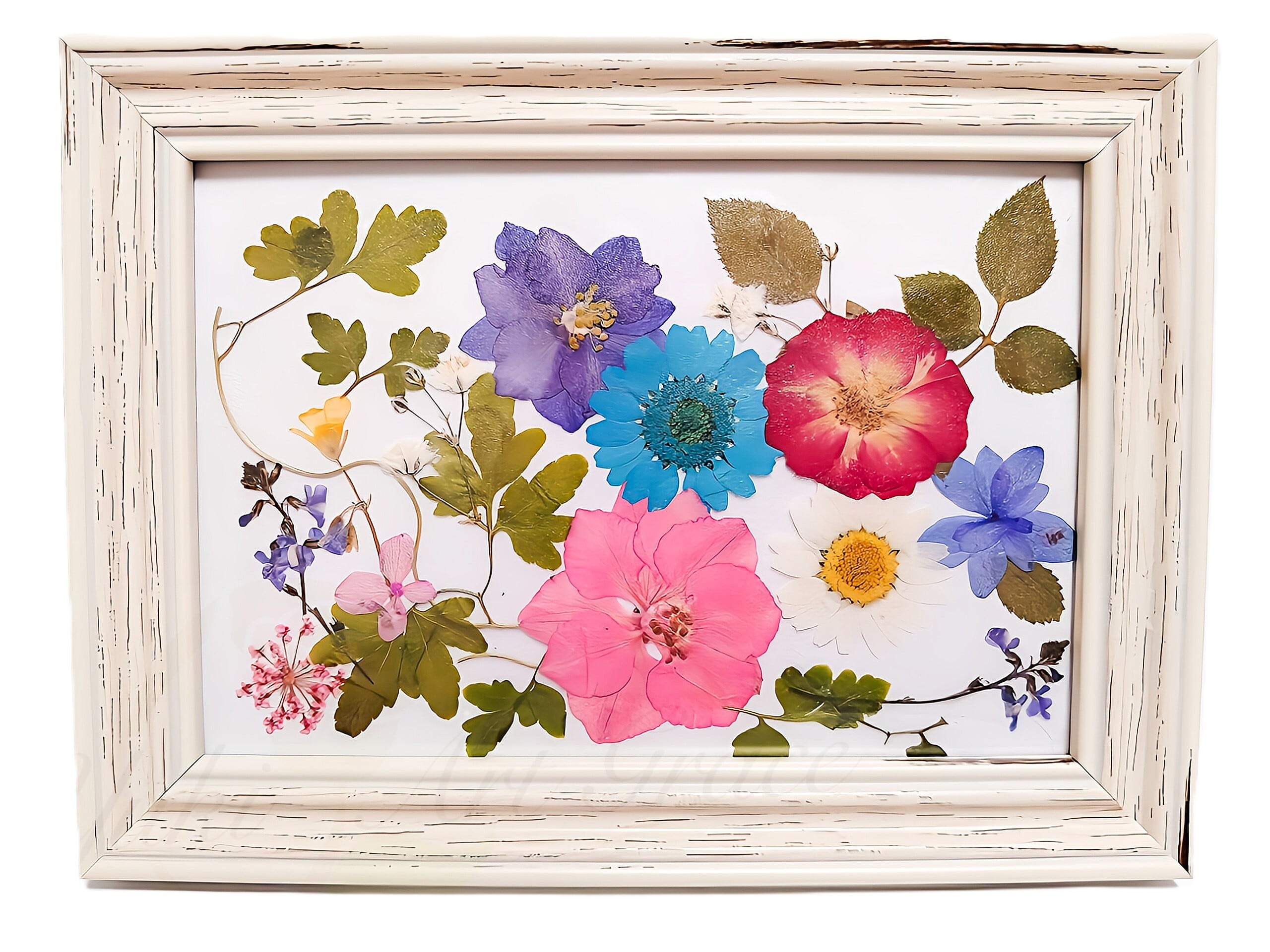 押し花アート(薔薇・ノースポール・千鳥草)Pressed Flower Art