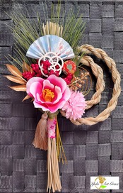 日本のお正月・稲穂本しめ縄飾り(ピンク)/Japanese New Year: Rice Ear Shimenawa Decoration (Pink)