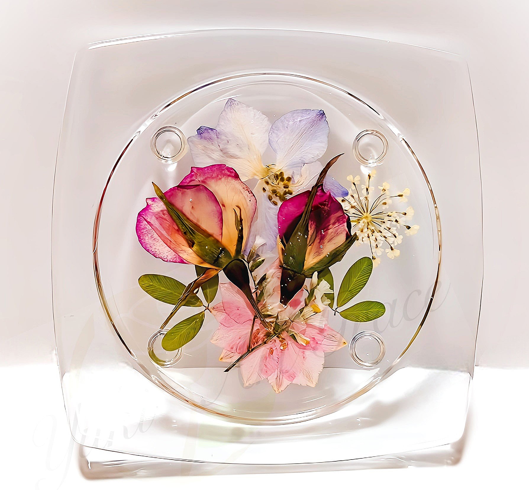 This is a Herbarium Coaster (pressed flowers) featuring roses. We use real flowers.